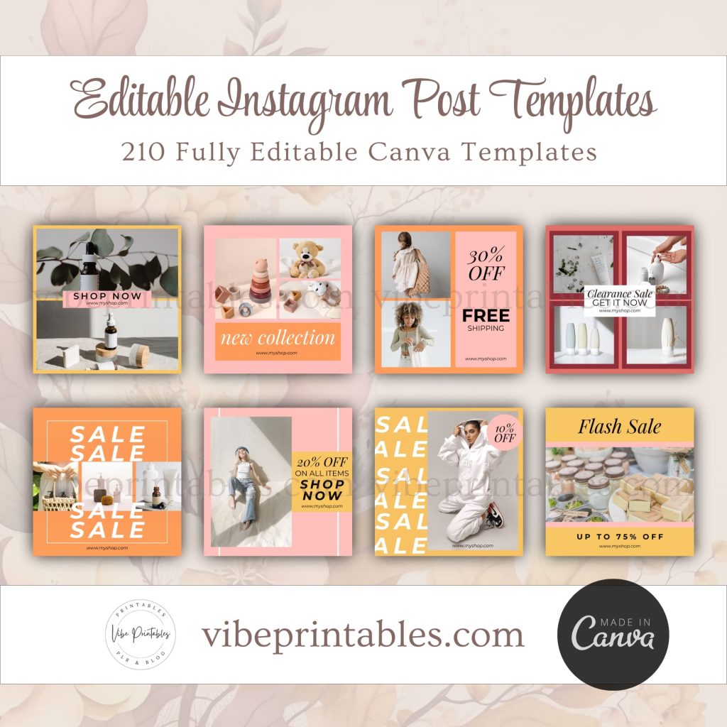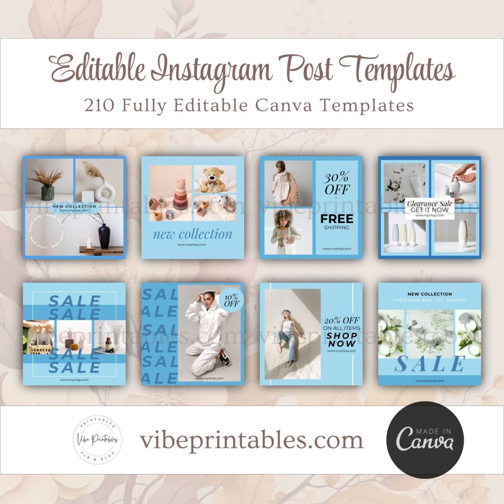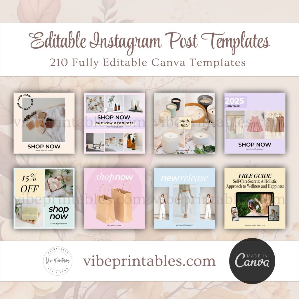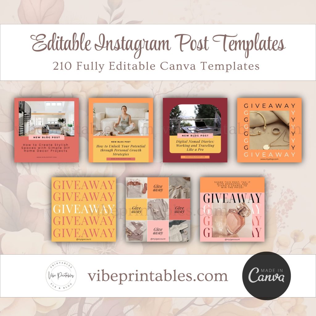 ✅ 210 Fully Editable Canva Templates so you can easily customize fonts, colors, and images.